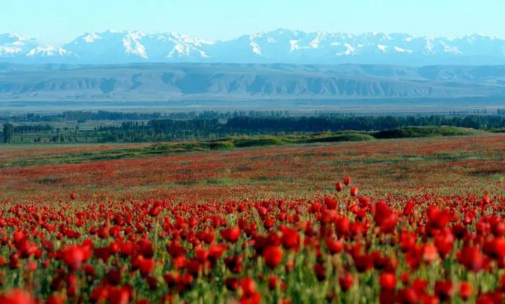 5.新疆有種紅,叫虞美人。天山紅花偏偏學(xué)不會(huì)低調(diào),在短短10天的花期里,所有的熱情噴薄而出,染紅了新疆。