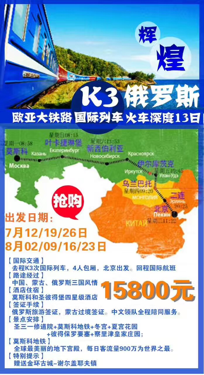 【穿越俄羅斯西伯利亞鐵路火車深度13日之旅】火車出發(fā)飛機回【編號:LM13】