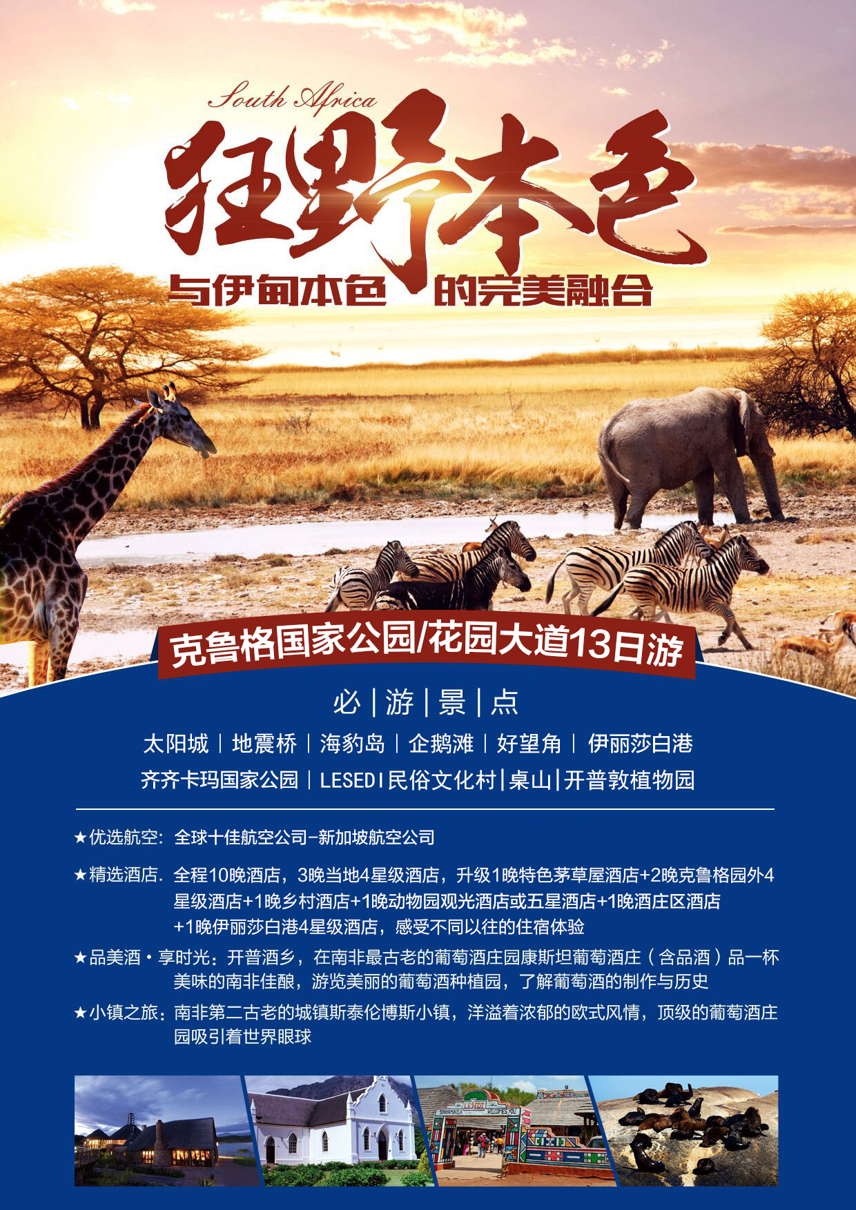 備注:由于南非旺季,動(dòng)物園酒店房間有限,如遇動(dòng)物園酒店滿房,則升級為五星酒店,如升級五星晚餐改為中式晚餐,敬請知曉!