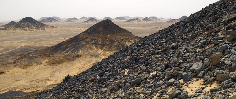 緊靠白色沙漠北部的黑色沙漠更加臨近 Bahariya 而非 Farafra;位于 Bawiti 以南大約 50 公里。山脈受到腐蝕,為沙漠覆蓋了一層黑色的粉末與石塊,黑色沙漠也就因此得名。黑色沙漠盡頭就是黑色的火山山丘,千萬年之前它們噴發(fā)出了名為粗玄巖的黑色火山物質(zhì),而這些物質(zhì)就組成了黑色巖石。登上海瑟沙漠的最高點大英山,盡情欣賞這里的奇異風景。當您從 Bahariya 前往 Farafra 時就能看到黑色沙漠。然而,如果您渴望深入探索這片地區(qū),那么最好前往 Bahariya 或 Farafra 聘請導游。