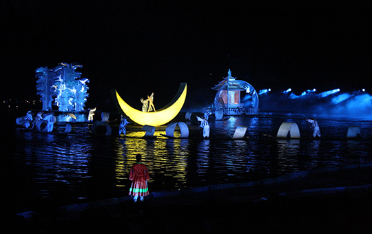 取廣西各民族獨(dú)特風(fēng)情與八桂文化精粹,精選非遺類節(jié)目,并將之以表演形式呈現(xiàn)出來(lái)的——戲樓·《桂秀》,正所謂“北有漢秀,南有桂秀”?!肮鹦恪敝蒙碛谝詮V西民族風(fēng)情文化為魂的陽(yáng)朔·戲樓,以全球唯一侗族木構(gòu)雙層戲臺(tái)樓為舞臺(tái)背景,以世界最大油紙傘為舞臺(tái)天幕,采用最新的表現(xiàn)手法,將傳統(tǒng)民族歌舞表演與現(xiàn)代人文高度融合,形成具有世界級(jí)表演水平的表演秀場(chǎng)。